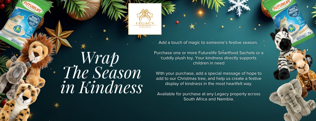 Guests now have the opportunity to change a child’s life, when purchasing a Legacy Pride Plush Toy, or adding an amount of their choice to their bill on check out. The funds raised will be invested back into the local communities in which Legacy operates through purchasing Futurelife Smart Food. Investing in the health and well-being of children is an investment in the future development of our country.